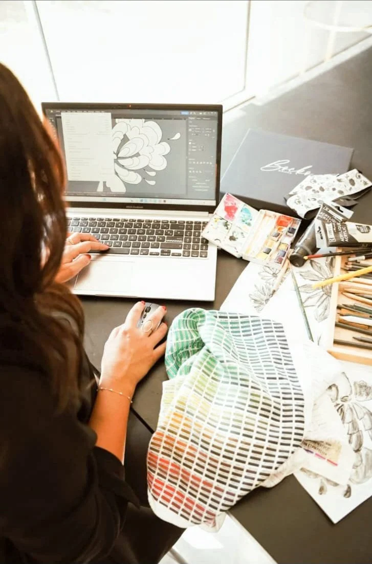 Une fois l’atelier terminé, je prendrai soin de vos créations en effectuant les traitements nécessaires, y compris le fixage, le lavage, l’apprêt, et le roulottage. Chaque œuvre sera soigneusement emballée dans une boîte Maison Bocko, incluant une étiquette "Made in France" , la composition 100% soie et votre signature. Vous recevrez votre création dans un délai de quatre semaines, prête à être portée ou offerte.